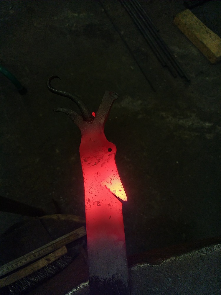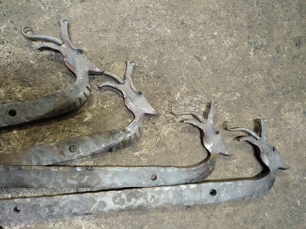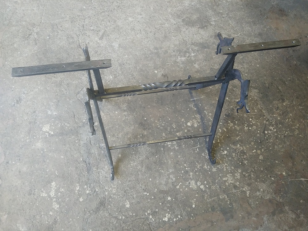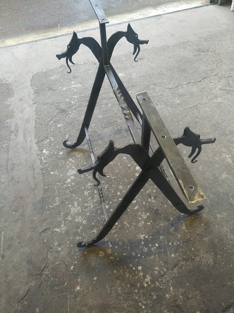 Forge de deux pieds de table en tréteaux. Dimensions 60x45cm, hauteur 65cm, dragons forgés dans du 40x10mm
