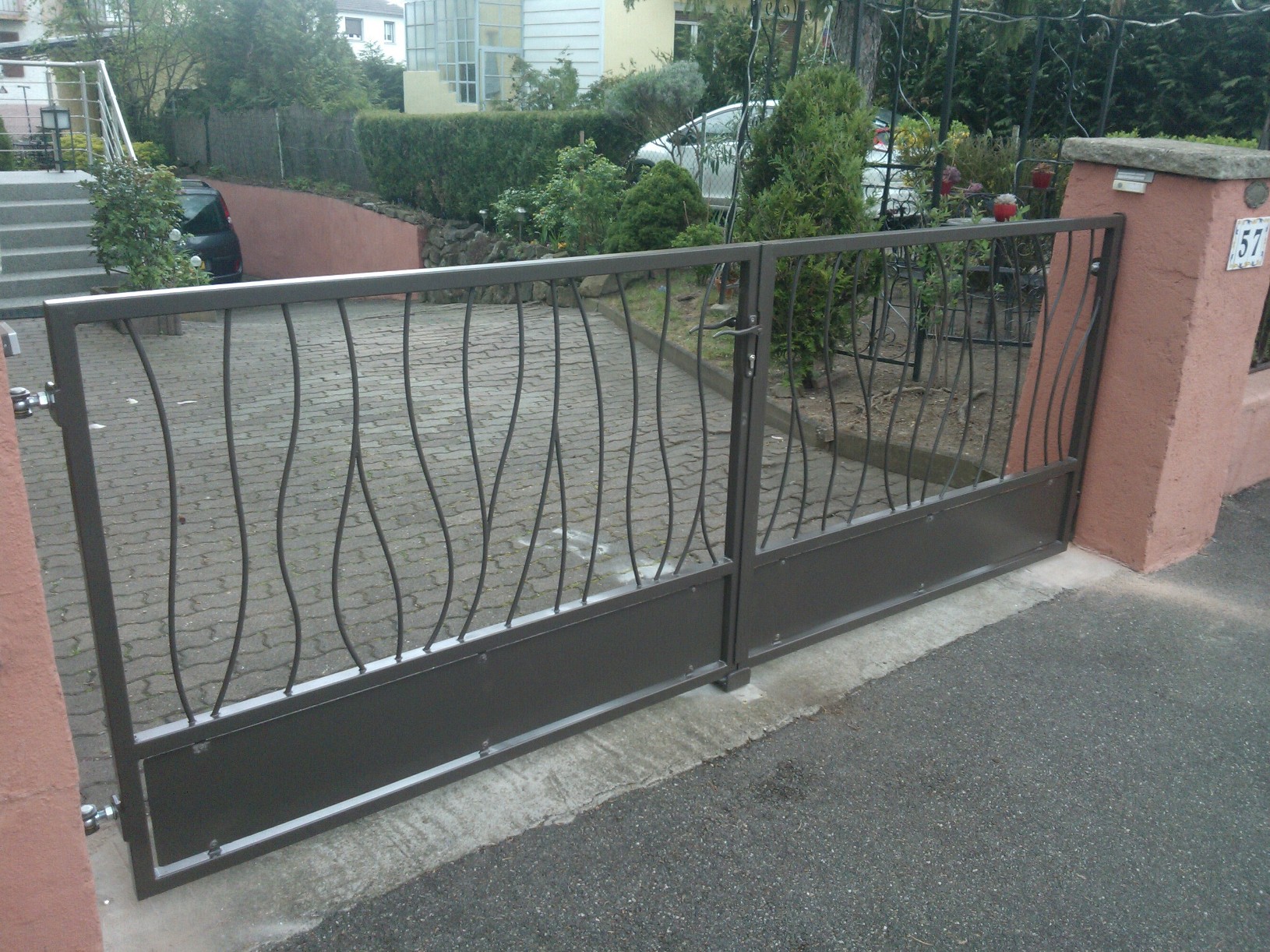Réalisation d’un portail deux ventaux en tube 30×30 et rond de 10mm. Longueur 3m, hauteur 1.1m.