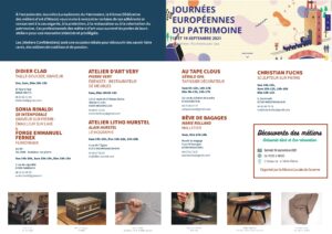 Portes-ouvertes à l’atelier les 18 et 19 Septembre 2021 (journées du patrimoine)